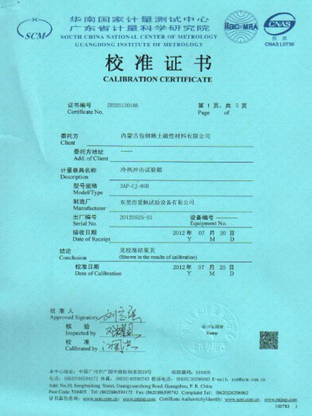 沖擊箱校準(zhǔn)證書