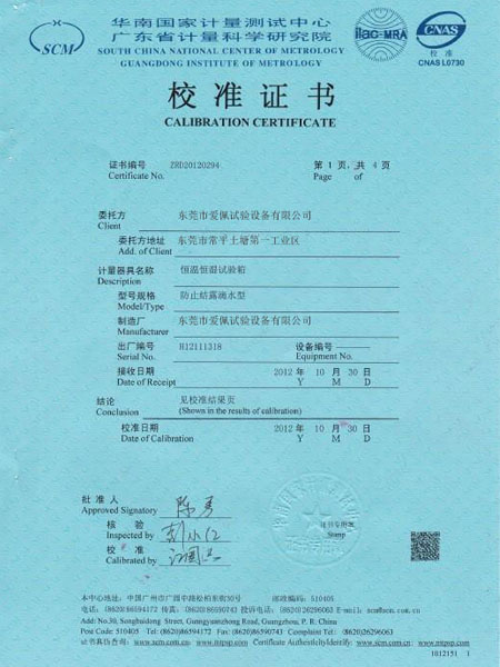 恒溫防結霜校準證書