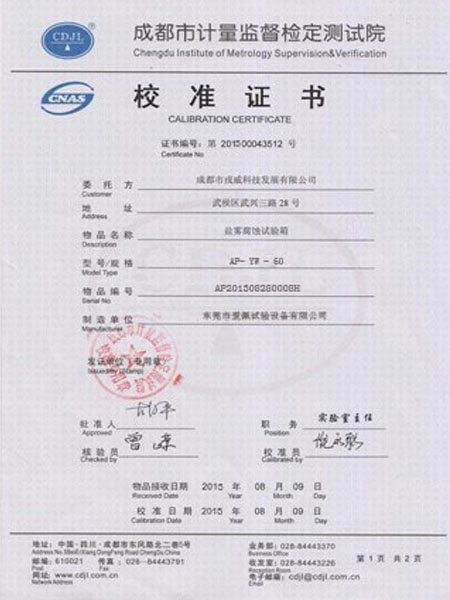 鹽霧箱校準(zhǔn)證書(shū)