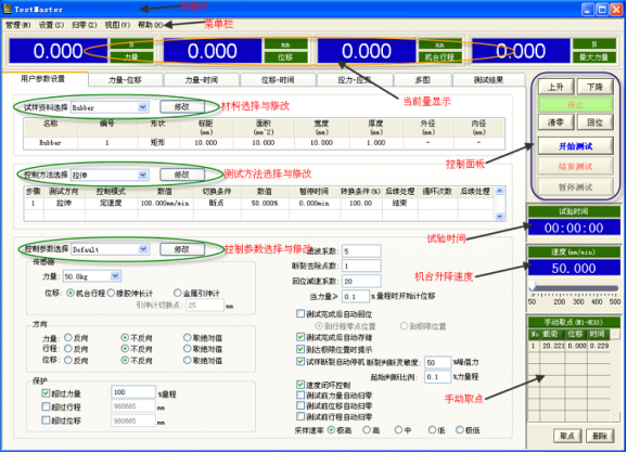 H.豪華測(cè)試界面軟件可實(shí)現(xiàn)定速度、定位移、定荷重等控制模式加上多階控制模式可滿足不同的測(cè)試要求。