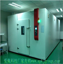 步入式高低溫恒溫恒濕房是由優(yōu)質(zhì)碳素鋼板,表面作靜電彩色噴塑處理+聚胺標準保溫板、型材模塊化結(jié)構(gòu)組合式安裝的大型試驗房。本試驗房用于給大型的工業(yè)待試產(chǎn)品如汽車配件、電視機配件或成品、長型燈具、大型顯示器、玻璃制品、光電通訊產(chǎn)品、儀器儀表、電工、電子產(chǎn)品、化工涂料、家用電器、航空航天及各種工業(yè)產(chǎn)品及相關(guān)產(chǎn)品的零部件在高溫、低溫、恒溫、恒濕、的環(huán)境下生產(chǎn)、貯存、運輸、使用時的提前適應性批量試驗或抽檢試驗。步入式高低溫恒溫恒濕房的主要特點就是尺寸大、可以做成單開門或雙開門設(shè)計、人及物品可同時進入房間整理,可以隨意步入或步出,愛佩廠家主要根據(jù)顧客的產(chǎn)品大小定尺寸后對產(chǎn)品按照國家標準要求在高溫、低溫、恒溫、恒濕、高低溫交變濕熱的條件下對測試物品的物理試驗以及其它相關(guān)特性進行環(huán)境模擬測試,通過測試結(jié)果來判斷測試物品的性能,是否仍然能夠符合預定的要求,以便于檢出不符合標準的產(chǎn)品進行改變設(shè)計、改進質(zhì)量、加強管理鑒定等有極大的幫助。