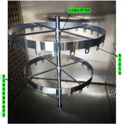 6、換氣量大小調(diào)整裝置一套。換氣量為3次~200次/小時在RT~250 ℃內(nèi)可調(diào)(在80度時測定)。