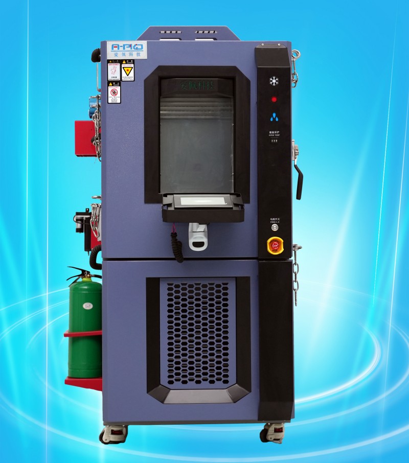 愛佩生產(chǎn)的鎳氫電池恒溫恒濕試驗箱防爆原理:利用滅火器及噴水進行雙重滅火,泄壓輔助達到防爆目的,若樣品在設備內箱測試過程中發(fā)生爆裂,產(chǎn)生的煙霧第一時間會啟動防爆系統(tǒng),經(jīng)由內部抽氣泵排入裝煙感器的罩子內,感應后即觸發(fā)滅火器開關,滅火器內干冰噴入內箱進行滅火,緊接著噴淋裝置噴水再進行二次滅火。當內箱氣壓過大時,泄壓孔會被沖開,即完成泄壓工作。