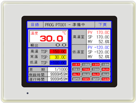 TEMI880P 韓國三元原裝進(jìn)口 5.7寸TFT液晶屏 RS232通訊介面, 可選配USB存儲。 | 介面中英文可切換 120組,1200段, 每段99小時 全部循環(huán)999CYC 部分循環(huán)99 |