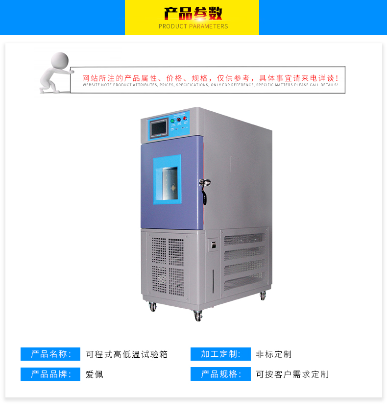 升溫、降溫、系統(tǒng)完全獨(dú)立可提高效率,降低測(cè)試成本,增長(zhǎng)壽命,減低故障率。技術(shù)參數(shù):溫度范圍:-70℃~ 150℃溫度波動(dòng)度:≤±0.5℃溫度均勻度:≤2℃型號(hào)及尺寸(W*H*Dmm):型 號(hào) 工作室尺寸有多個(gè)尺寸可選擇: 1000px×1250px×1000px;1250px×1500px×1250px;1250px×1875px×1500px;1500px×2125px×2000px;2500px×2500px×2000px;2500px×2500px×2500px;以上尺寸只是標(biāo)準(zhǔn)熱銷尺寸,東莞市愛佩試驗(yàn)設(shè)備有限公司還可以為大家提供非標(biāo)設(shè)計(jì)服務(wù),如有需求請(qǐng)聯(lián)系鐘18988712117。